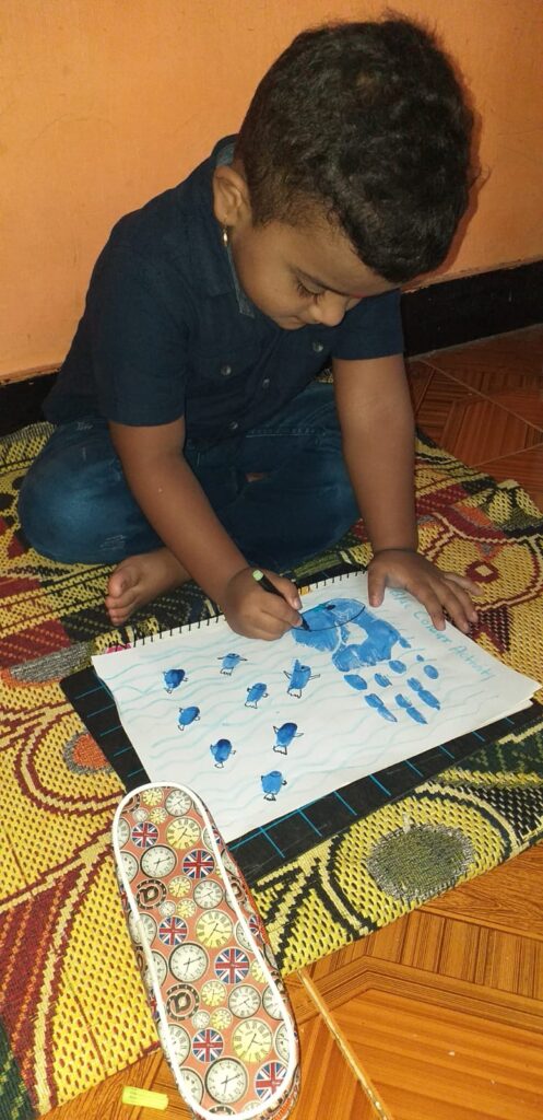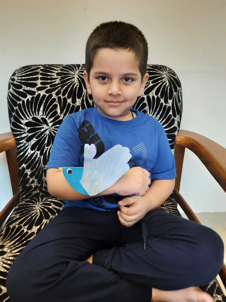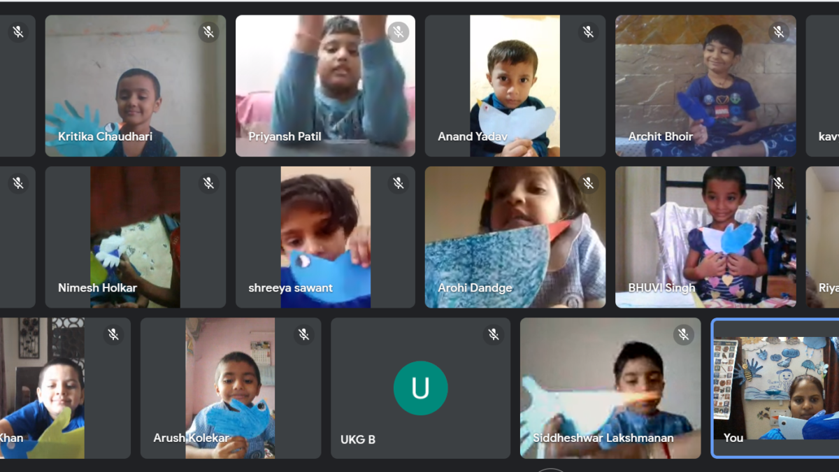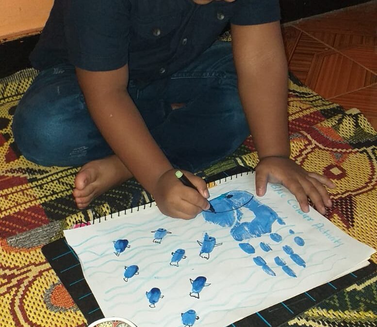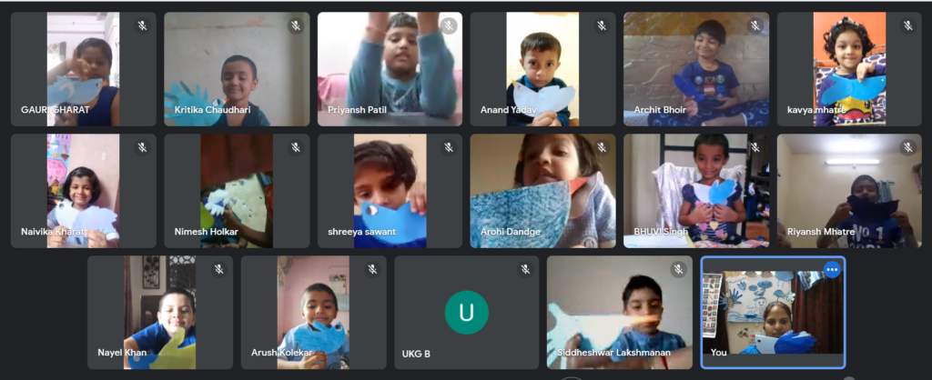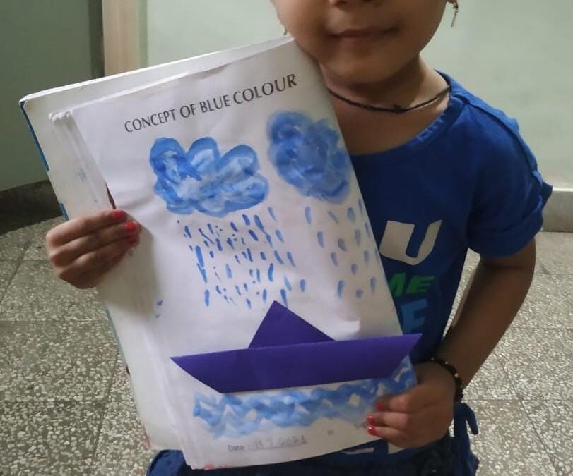 The colour blue is often associated with depth and stability. The students of Naval KG were taught about the colour blue on 19 July 2021. The students and teachers dressed up in different shades of blue and the surrounding area was also decorated with blue coloured things. A short story about various colours and especially the colour blue was shown to the students. Various rhymes related to blue colour was also recited. Many fun-filled activities like origami boat making, making of clouds with cotton dabbing, making fishes using hand and thumbprint, art and craft activities like making of a bluebird, colouring the dolphin etc were organised and carried out. The motive of celebrating the blue colour day was to make the students aware of the colour blue and its significance. Students enjoyed performing various activities through which they learned the concept well.