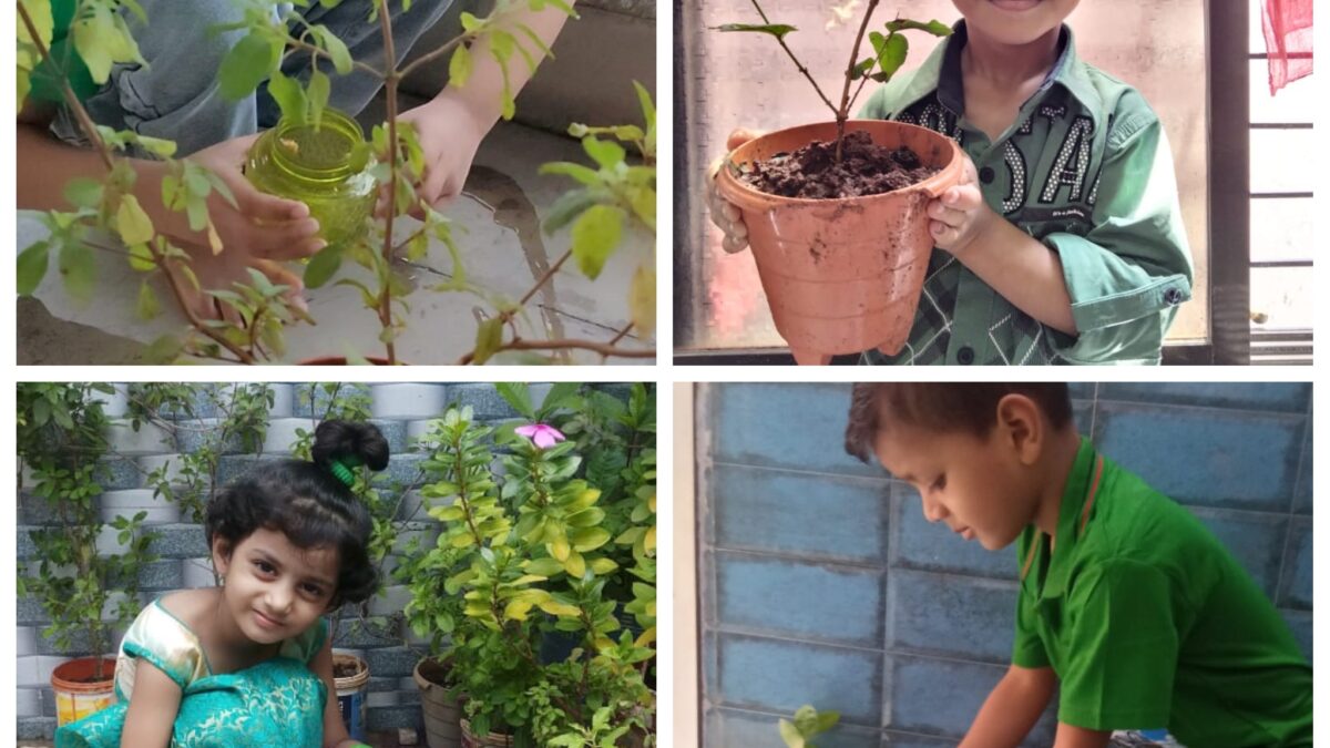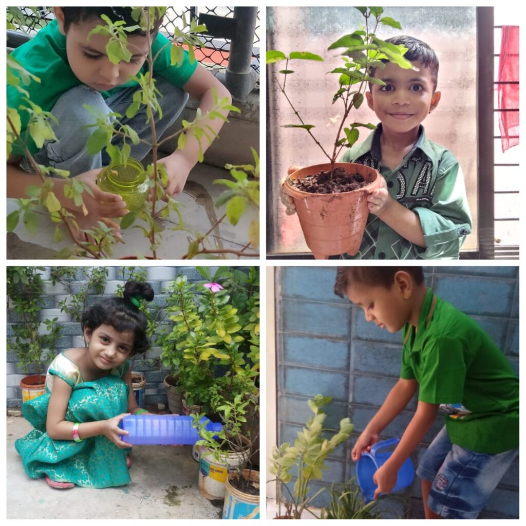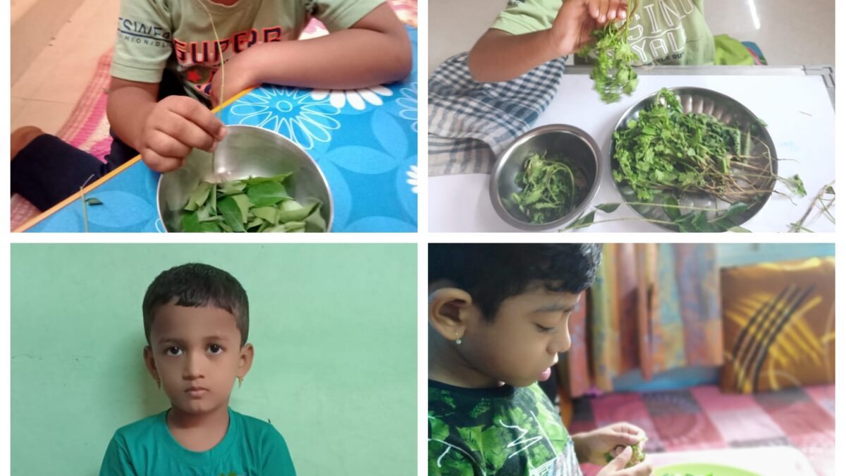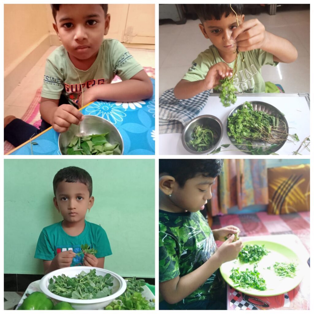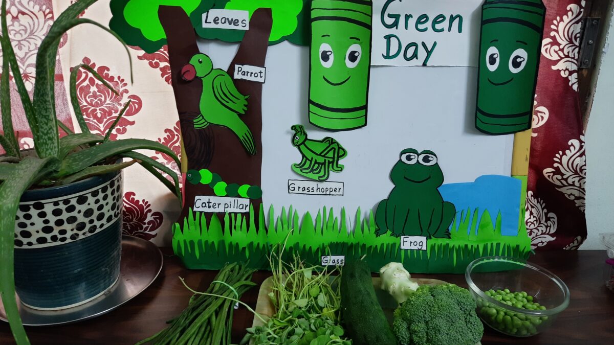 In the month of June, as the Monsoon showers begin, we find the nature at its best. Leaves on trees appear in different shades of green and it seems as if green colour is painted all over. NKG Mankhurd celebrated green colour day on 29th June 2021.Teachers planned age-appropriate activities and these were conducted during the online class session under the guidance of the teacher and with the supervision of the parents. All students wore green coloured outfits and participated in various activities. Students of Nursery participated in observation of growth of a seed into a plant with green leaves, germination activity and also carried out a bottle cap printing activity. Finger and hand printing activities with green colour paint was done by the students of Lower KG and the students of Upper KG, participated in life skill activities like plucking leaves from Fenugreek, Mint stems etc and using them as an ingredient of their meal. The various activities of green colour day celebration were aimed at improving the life skills, observation skills, fine motor skills and imaginative skills of students.