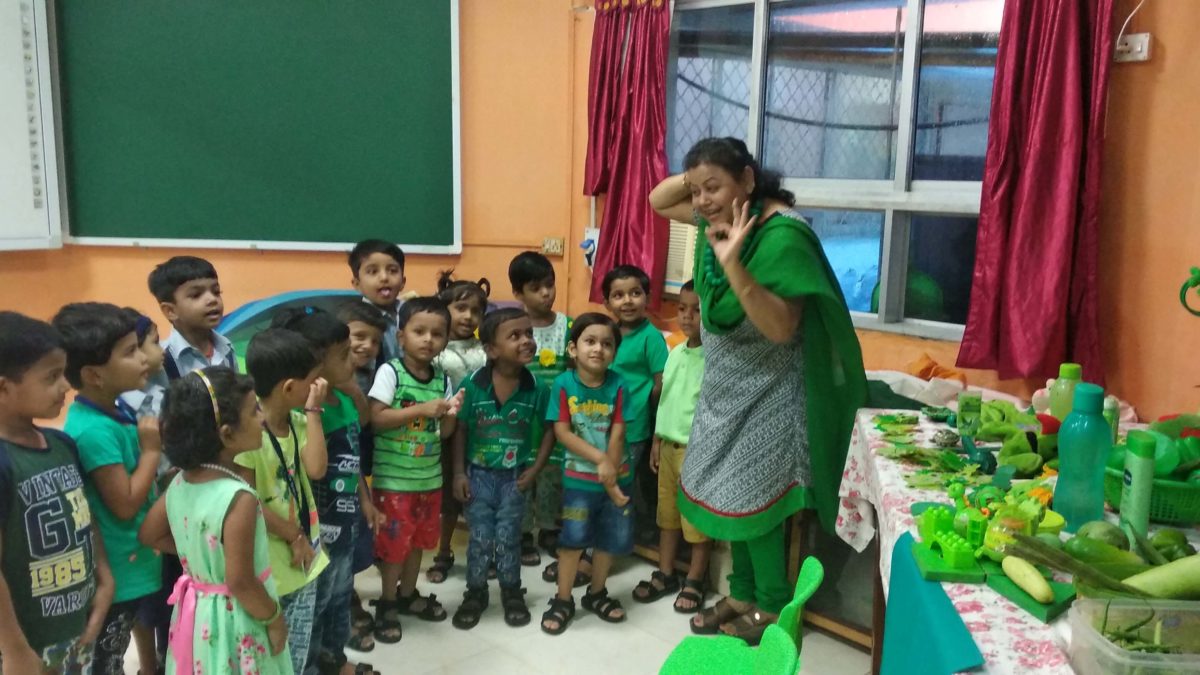 Amidst heavy downpour, the school observed the Green colour day on 10 July. Red and yellow, the bright and warm colours of summer were already introduced in the month of April. With the onset of monsoons in July, the fresh and verdant Greenery is all around us to make us feel vibrant and energetic. Children and teachers came to school dressed in various shades of Green. A green corner was decorated with various objects having green colour. Vegetables like bottle gourd, bitter gourd, ladies finger, capsicum, green chilies, soft toy puppets of frog, tortoise, snake, etc. were placed on a table. Teachers and children’s small contributions made the green corner come alive.