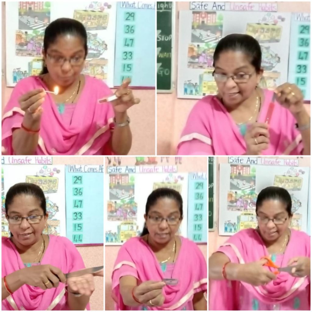 To make the children be aware of many safe and unsafe practices in our day-to-day life, an activity was conducted by the teachers of NKG, Mankhurd.