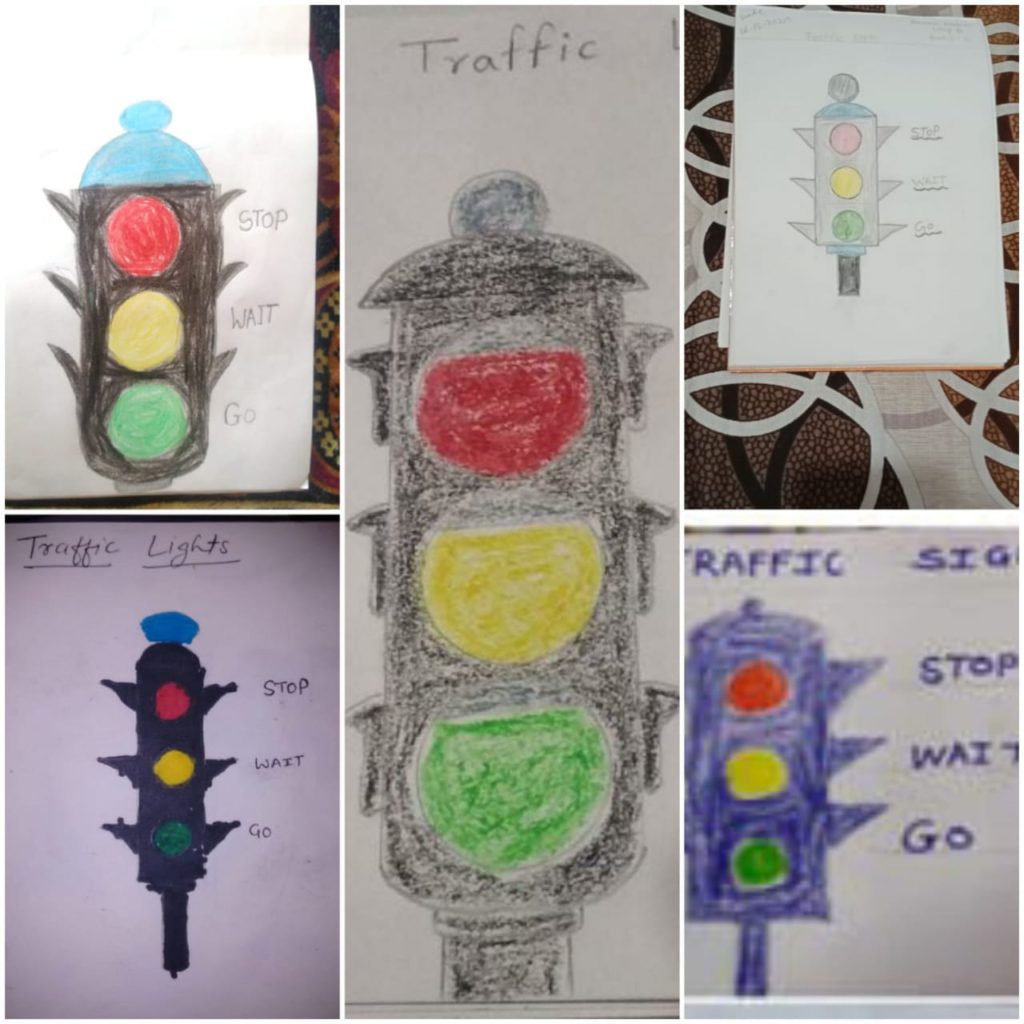 The teacher explained and demonstrated about various unsafe practices and urged the children not to practice these unsafe activities. Teachers also showed the children how to use certain objects in a safe manner so that they don’t get hurt themselves. The importance of following the traffic rules and the road safety guidelines were also explained to the children. The importance of using a helmet while riding a two-wheeler, wearing a seat belt while travelling in a car, not to put any body part out of a moving vehicle, not to make loud noise that disturbs the driver while travelling etc were explained to the children. A fun-filled quiz activity was conducted so as to assess whether the children have fully understood the safety rules.
