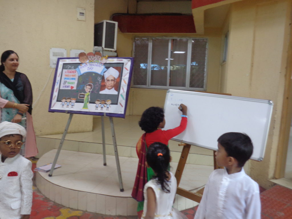 Being a KG school, Teachers day is a very special event and was celebrated on 9th Sept, 2019 (5th Sept was declared as holiday due to very heavy rain forecast). A special morning assembly was held where teacher explained that teacher’s day is celebrated in India every year on the 5th September to commemorate the birth anniversary of our second President Dr sarvepalli Radhakrishnan. He was a renowned academician and student friendly teacher who enjoyed immense popularity among his protégés.